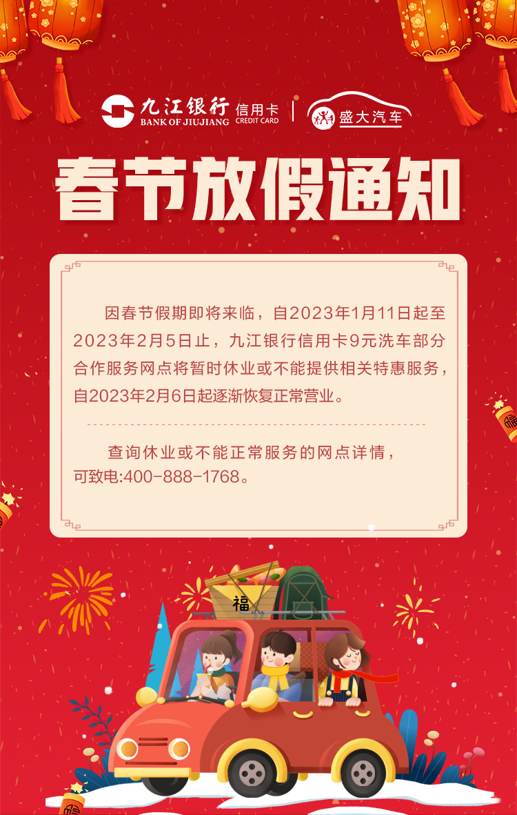 關(guān)于春節(jié)期間9元洗車活動商戶暫停服務(wù)的公告
