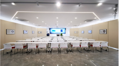 (三)專家講座區:以屏風做空間阻隔,呈半封閉式,內屏展示古錢幣知識,配備投影儀、電腦等設備,已放置桌椅60余套,同時配備桌椅40余套,可同時滿足100多人的課程教學。