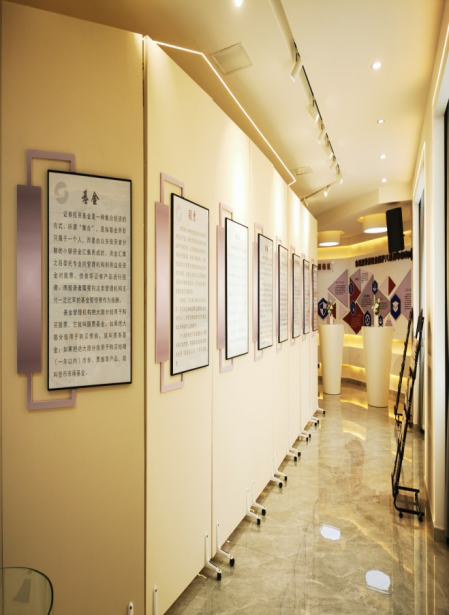 (一)文化走廊區:主要包括基地簡介、中國金融史發展等,其中用三分之二的篇幅重點向在校學生科普中國金融史的發展。