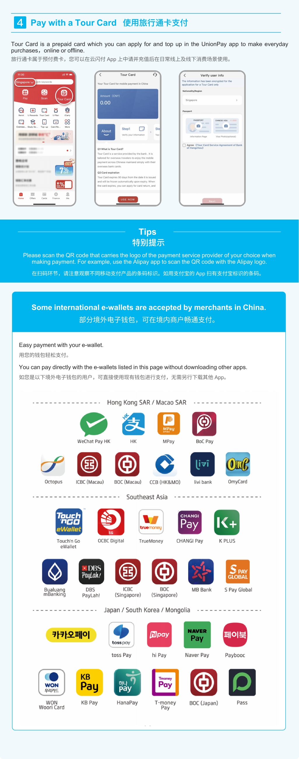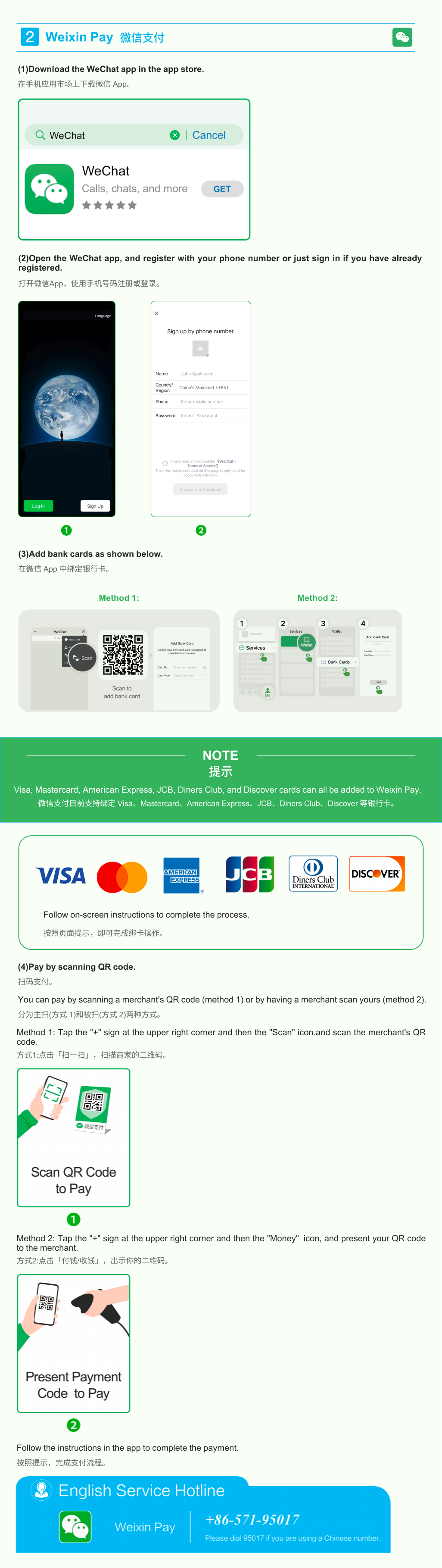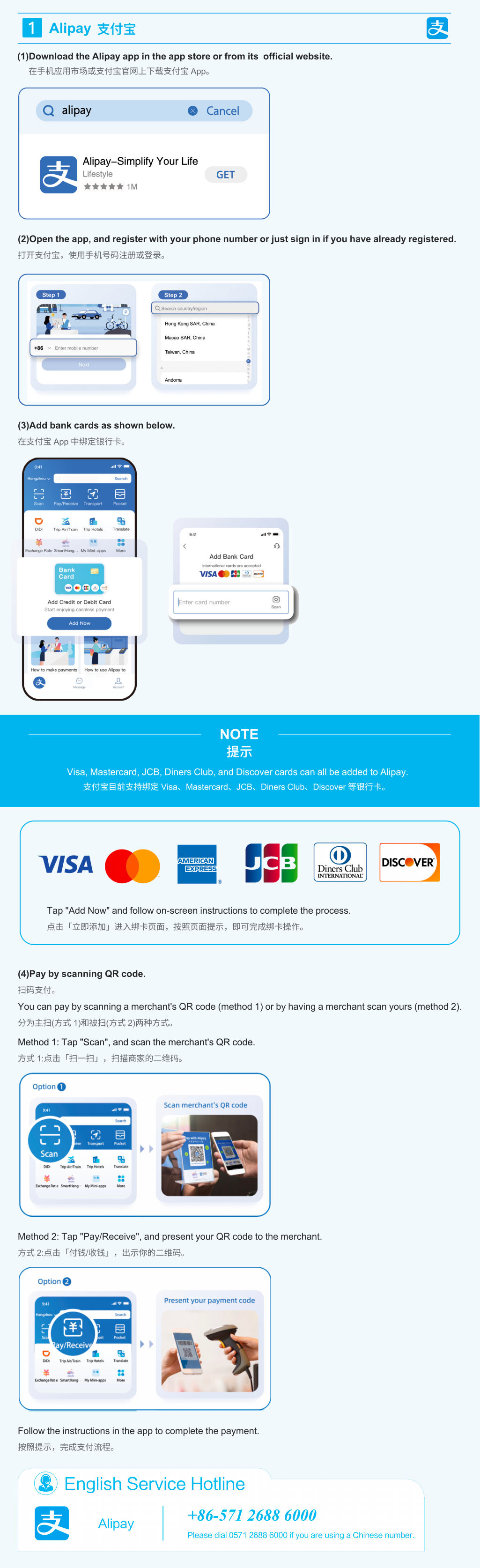 You can enjoy convenient payment services with just a mobile phone. Mobile payment services such as Alipay, Weixin Pay and UnionPay are available. For better payment experiences, no lD information is required for transactions under a certain amount. Give it a go! Please watch videos for more details at www.pcac.org.cn.